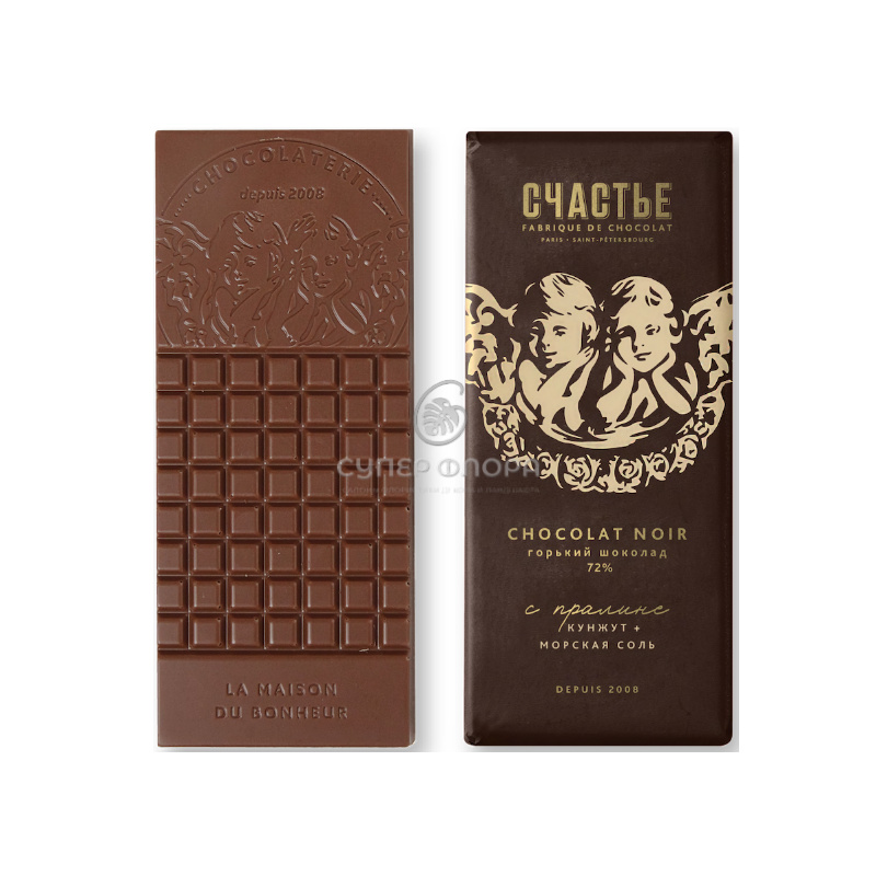 • Горький шоколад 72% с пралине кунжут - морская соль 1 шт.