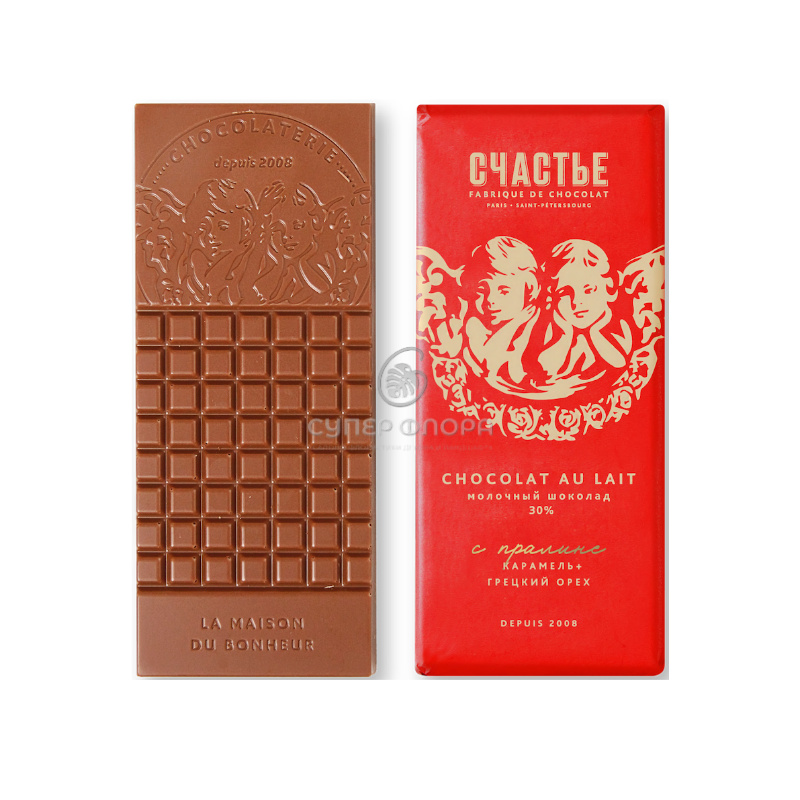 • Молочный шоколад 30% с пралине карамель - грецкие орехи 1 шт.