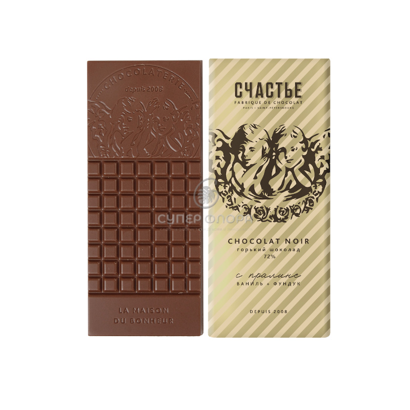• Горький шоколад 72% с пралине фундук - ваниль 1 шт.